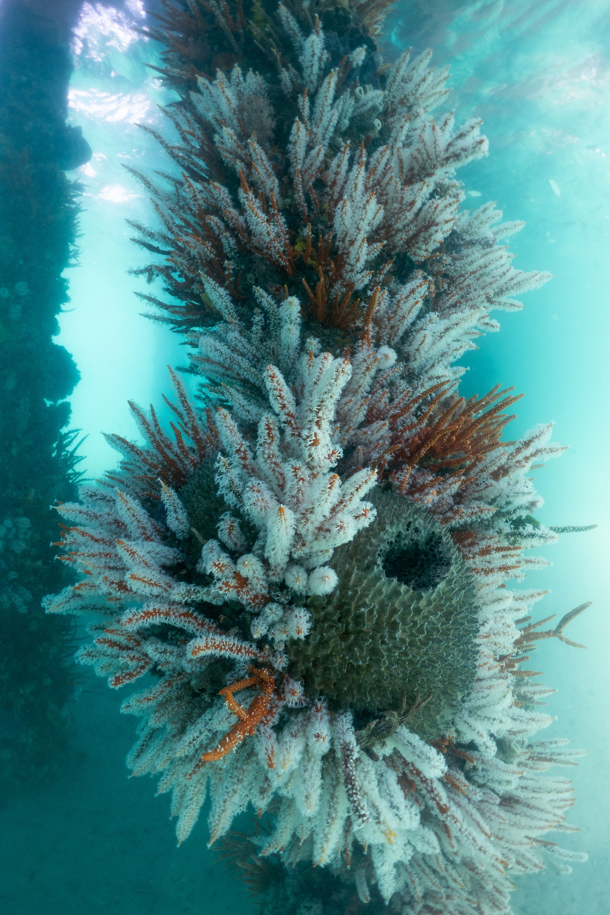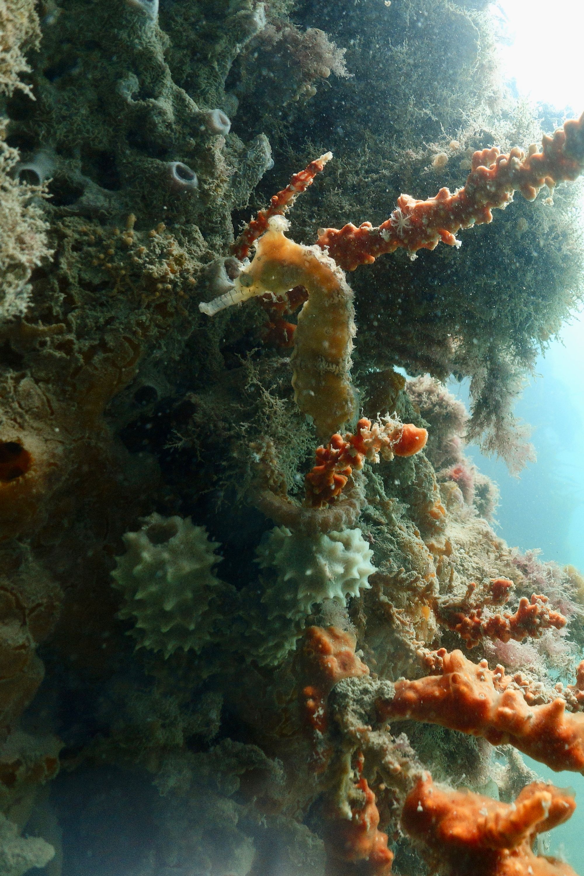 The structure of the jetty pylons provides a habitat for marine creatures you will struggle to find elsewhere. Swim slow and look close, because many of them are very tiny. One of the hardest to see is the seahorse, but the trick is to look for the shape of their tail wrapped around an anchor point.